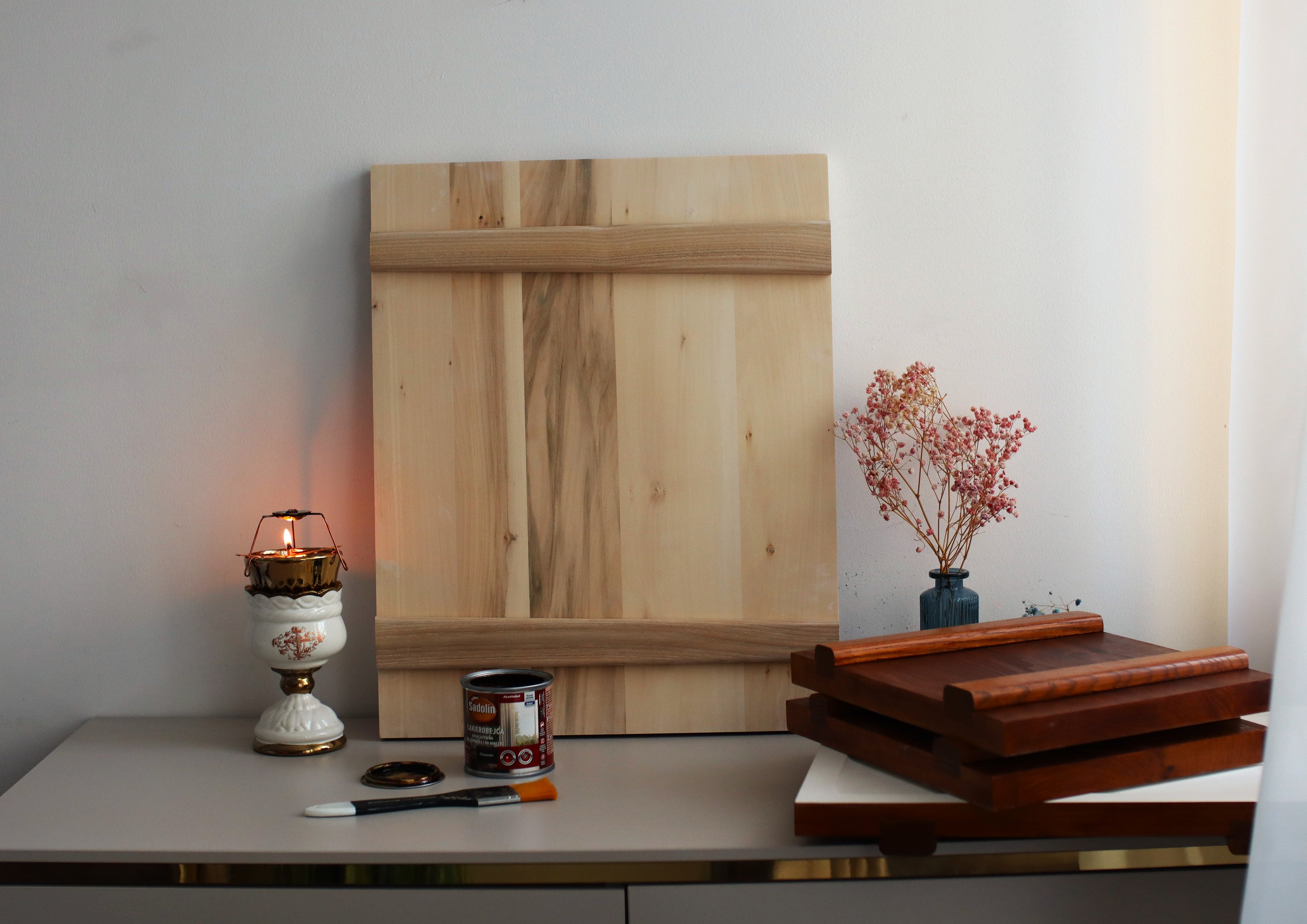 To create a proper surface for icon painting, a layer of gauze is glued onto a prepared wooden panel. Multiple layers of gesso are then applied. This ground is made from animal glue and natural chalk. Finally, the surface is carefully sanded and polished until it becomes perfectly smooth and ready for painting.